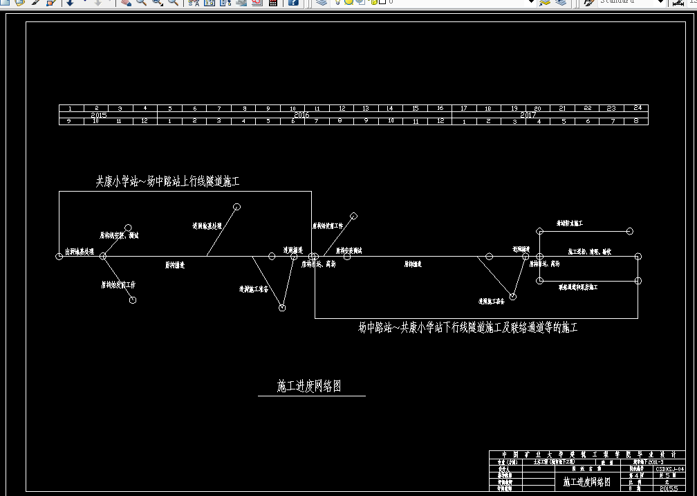 第二部分是区间隧道施工组织设计,根据隧道施工方法和隧道周边的环境情况,对施工前准备工作,施工场地布置,隧道开挖与衬砌结构施工等进行设计,并编制了工程进度计划,编写了相应的质量、安全、环境保护等措施。