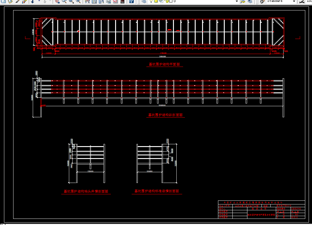 在第一部分中,通过对基坑的工程地质、水文地质以及周边的环境进行勘察,进行了围护结构方案的比选,最终确定采用地下连续墙加钢支撑的围护结构。然后进行了围护结构的内力以及变形验算,以及最终的配筋计算。