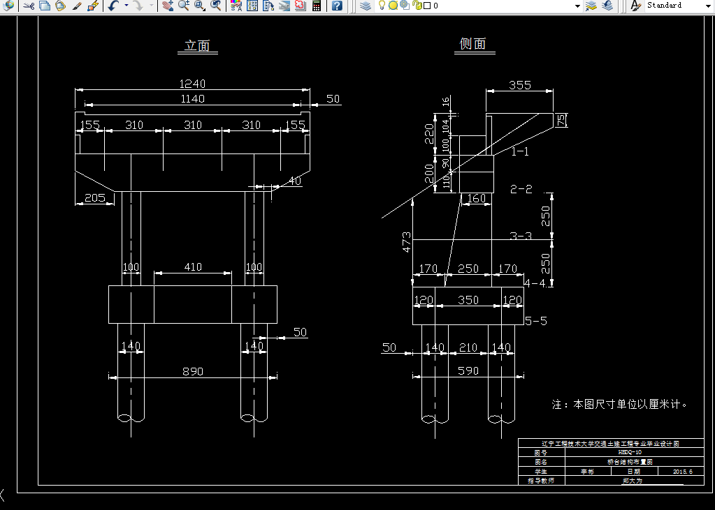 通过本设计的计算,本桥下部结构符合规范要求。设计保证了桥梁的安全、耐久、节约、和谐。本桥的修建提高了道路的通行能力,满足了交通运输的需要。