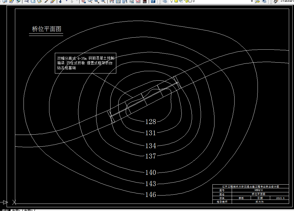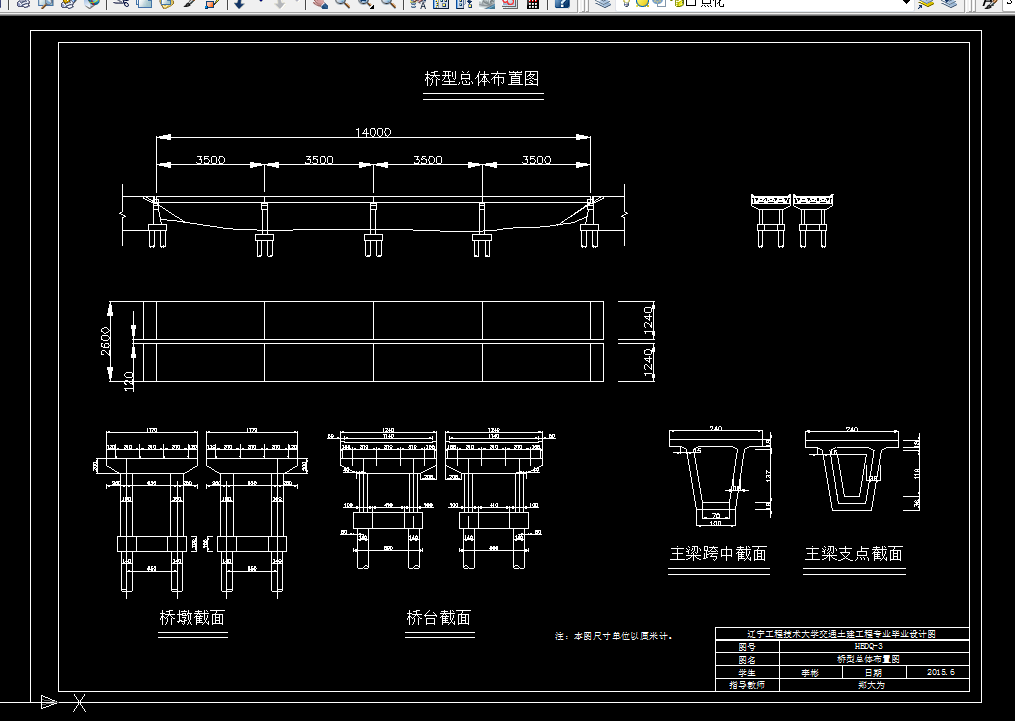 本设计是鸿宾大桥下部结构设计,桥孔布置为4×35m,预应力混凝土简支梁桥。桥梁全长140m,桥宽12.4m。设计时速100km/h,分离式双向四车道。