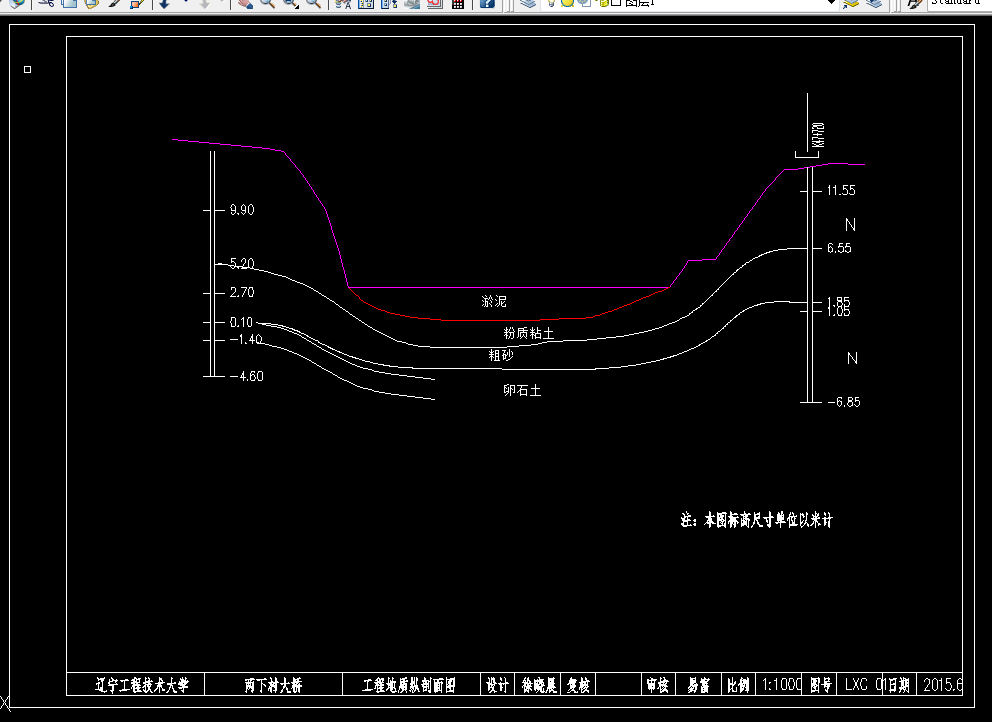桥墩设计:由于工程地质条件上部土层软弱选用双柱式双孔灌注桩,并进行截面抗弯和抗剪强度的配筋、验算和桩基础的稳定性验算。