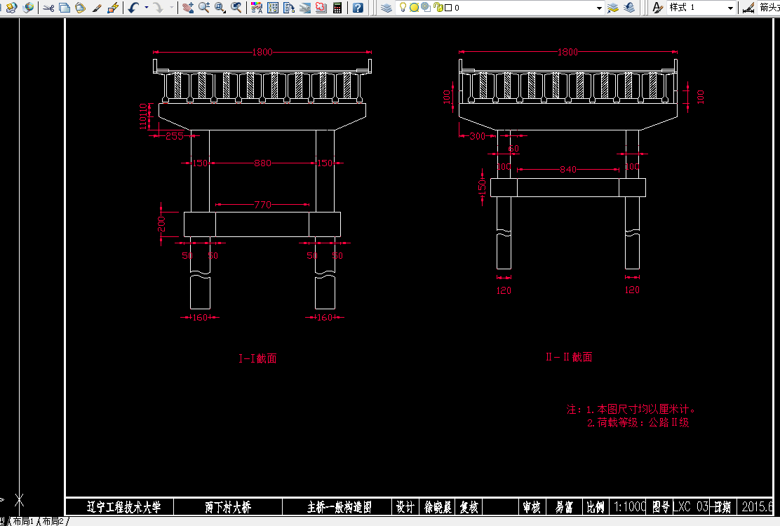 本设计两下村大桥下部结构设计,设计的车速V=60Km/h,该桥全长234m,采用5跨的整体式预应力混凝土简支T型梁桥。桥梁的下部结构是桥梁跨跃能力的基础,它的正常使用与否决定着交通的畅通与车辆的安全与否,所以,桥梁的下部结构设计就尤为重要。