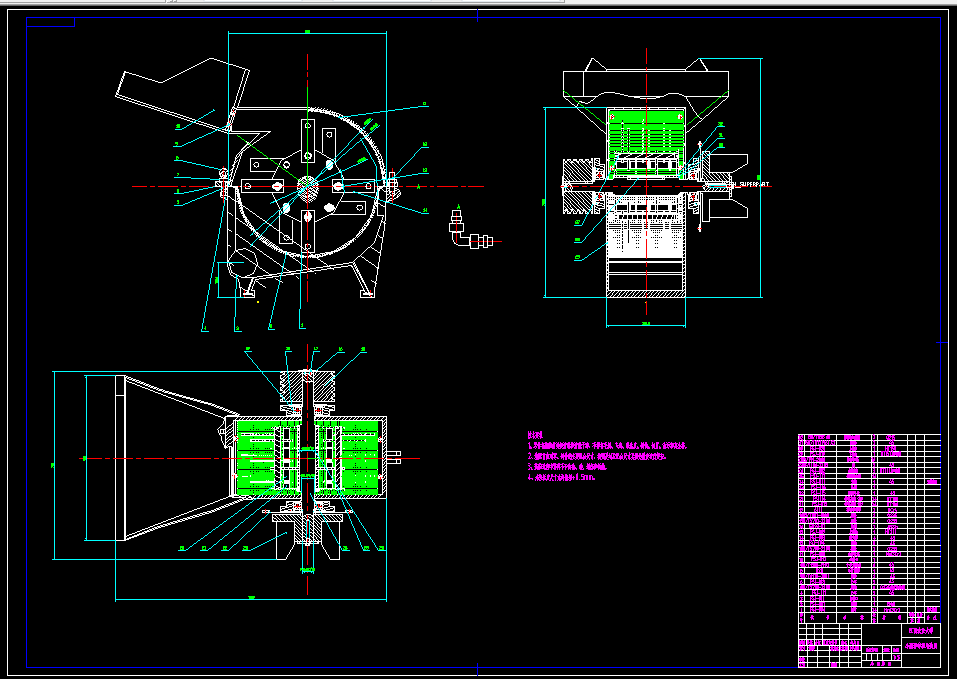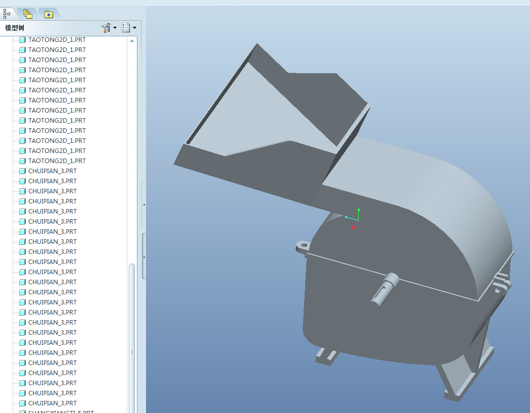 本次毕业设计是完成小型锤片粉碎机的设计。采用落料拉深、胀形整形、冲孔挤边工艺。设计中分析了粉碎机的构造及工作过程、粉碎机运动分析、粉碎机总体设计、传动系统设计,并绘制了pro/e零件图和装配图,同时绘制了CAD零件图和装配图。在粉碎机的设计中,本文对粉碎机的各个机构进行了运动学和动力学的详细计算,并对V带进行了严格的校核计算,确定了电机、联轴器和皮带等的具体参数。