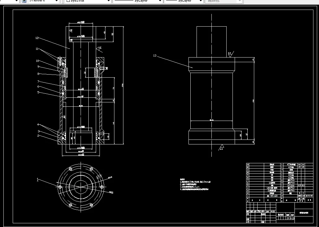 本文设计的重点在于进给系统液压缸的设计和PLC控制系统的设计。进给液压缸系统的设计主要包括液压缸结构设计和控制油路的设计;PLC控制系统设计主要是根据工作要求和控制需要,选择电气元件和编写控制程序来实现对自动钻床的控制。