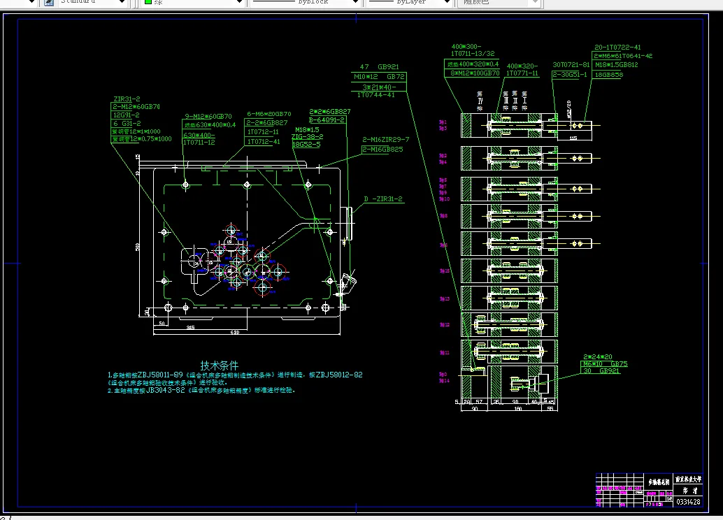 本论文为加工主轴箱箱体右侧十个螺纹底孔的组合钻床的设计。