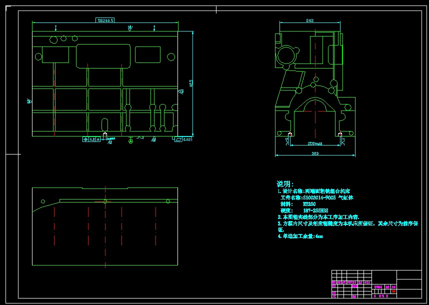 柴油机气缸体两端面粗铣组合机床总体及夹具设计本课题设计一台粗铣柴油机气缸体两侧面的组合铣床,主要完成组合铣床的总体设计及其夹具的设计。 根据柴油机气缸体的结构特点、加工部位、尺寸精度、表面粗糙度及生产率等要求,确定该机床为单工位卧式组合机床。