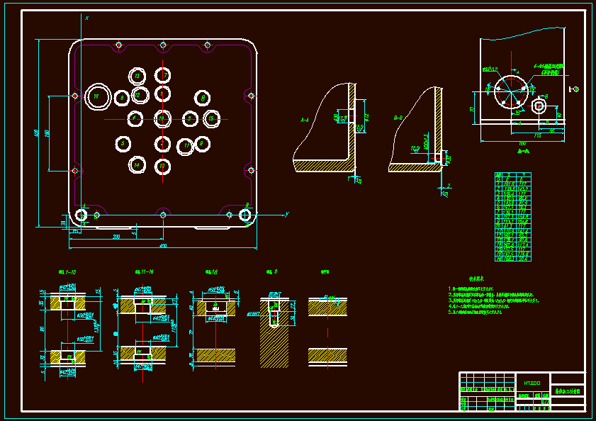 填料箱盖上十个孔多孔加工组合机床设计本次的设计的主要任务是对填料箱盖上十个孔而进行多轴箱机床设计的,在填料箱盖的十个孔里,四个孔是螺纹的加工,其余的六个普通孔的加工。