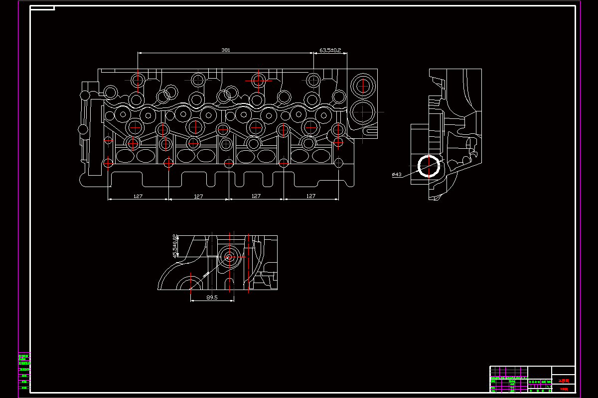 (3)、组合机床部件设计包括专用多轴箱的设计,传动布局合理,轴与齿轮之间不发生干涉,保证传动的平稳性和精确性。专用主轴设计、轴承的选用及电机的选择等。