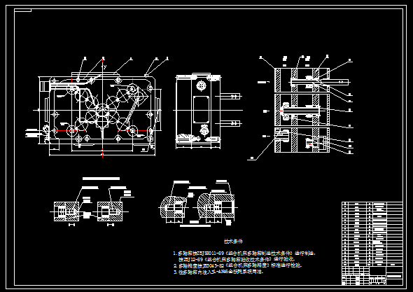本课题设计了变速箱箱体钻孔工位移动工作台卧式组合机床多轴箱。在设计中,根据被加工的零件图计算确定了箱体的尺寸大小,通过钻孔工序切削用量的确定,再计算出钻孔工序的切削参数,进而计算动力参数,由动力参数选择了动力箱。然后制定传动方案。根据传动方案及设计需求选定所用的轴、轴承、齿轮、油泵和其它与之配套的零件,并计算出主轴和传动轴的坐标。最后对本设计选用的轴、轴承、齿轮进行了校核。通过本设计实现钻孔在同一机床上加工,同时使用多把刀具并在几个方面对工件进行加工,达到较高的工序集中程度,从而获得较高的生产率。 多轴箱是组合机床的核心部件。它是选用通用零件,按专用要求进行设计的,在组合机床设计的过程中,是工作量较大的部件之一。它是根据工序图和加工示意图所确定的工件加工孔的数量和位置,切削用量和主轴类型设计的传递各主轴运动的动力部件。其动力来自通用的动力箱,与动力箱一起安装于进给滑台,可完成钻,绞等加工工序。本设计可实现了多孔的一次加工完成,提高了工作效率。