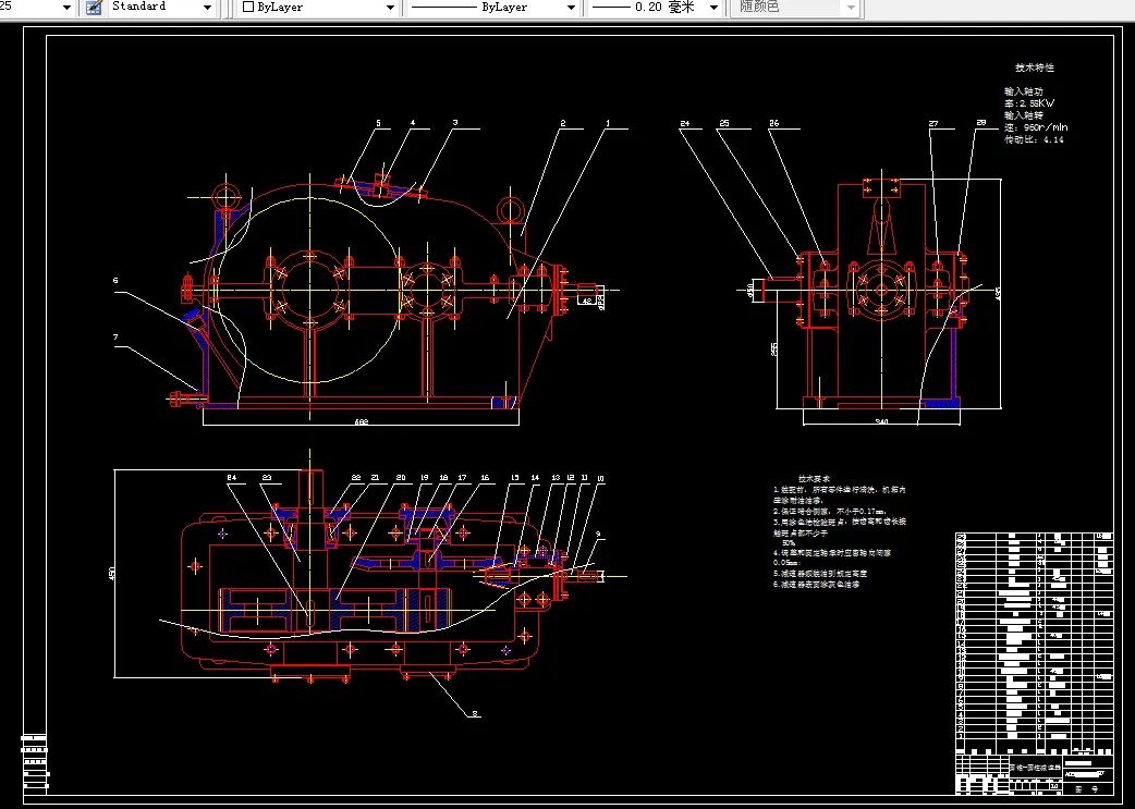 M856-二级同轴式斜齿圆柱齿轮减速器F=4500,V=1.8,D=400