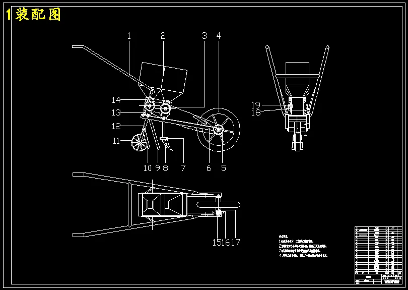 本设计是根据国内外农业播种机的发展趋势,本着良好实用性、适应性和结构简单便于操作的原则,从而设计的一种新式手推式花生播种机。该机在结构上的优点,能适应多种田地的播种。小到1-2分大的田块,大到上百亩的田块,不管是平坝、还是浅丘地区;无论是板结的土质,还是疏松的土质都能适应。本设计着重考虑了播种机的原理,包括链条链轮传动机构、排钟排肥机构、种箱、地轮、压土轮、覆土器、开沟器和整体机架组成。从机器运动的功能出发,按类比法以及变异—组合法完成机构的构件和设计,使结构紧凑,体积小,噪音小、无污染,使用方便灵活的特点,适合一般土地环境的播种。采用手推提供动力,无需引擎驱动,达到了节能环保的目的,而且使用安全、可靠,便于维护。