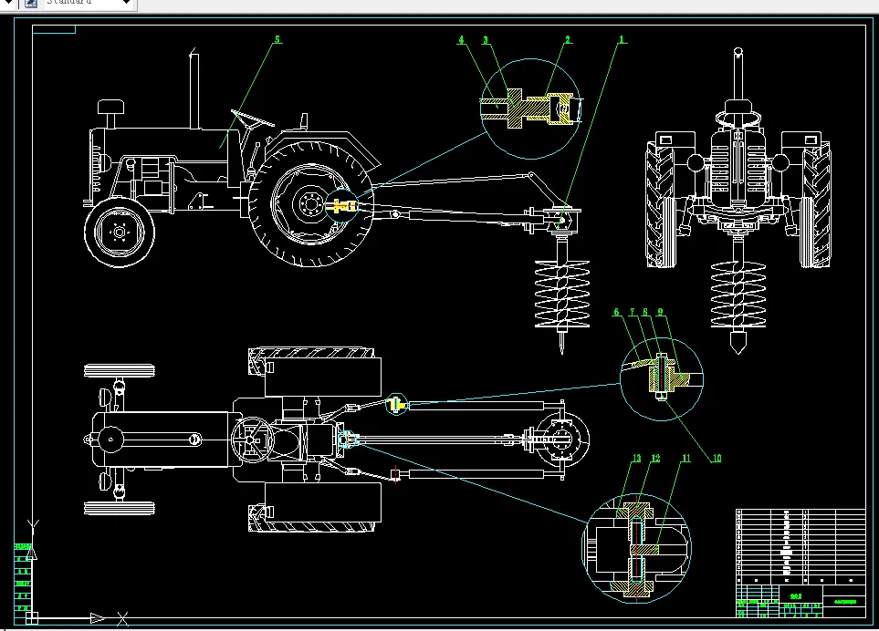 现代新型挖坑机的研发主要向系列化、多功能和高性能方向发展。本植树挖坑机采用悬挂式与拖拉机三点悬挂式联接,即钻头在悬挂支臂的一端,支臂的另一端置于拖拉机悬挂支点上。