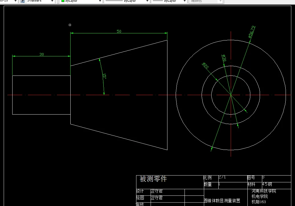 关键词:圆锥体端面直径,测量装置,精度分析,工艺分析设计