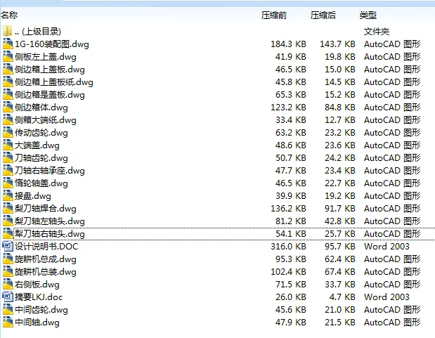 设计课题为1G-160型旋耕灭茬机总体及侧边传动装置设计,来源于生产实际。本设计主要是在普通卧式旋耕机的基础上改进设计,使之既能旋耕又能灭荐,以实现一机多用。设计的主要内容为:总体方案设计、绘制灭茬状态工作总图,设计侧边或中间齿轮传动装置及刀辊轴。