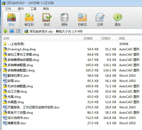 该深孔钻床由立柱、立柱底座、中间底座、液压滑台、动力箱、多轴箱等组成。本文对各部分的设计进行了详细的计算和论证。