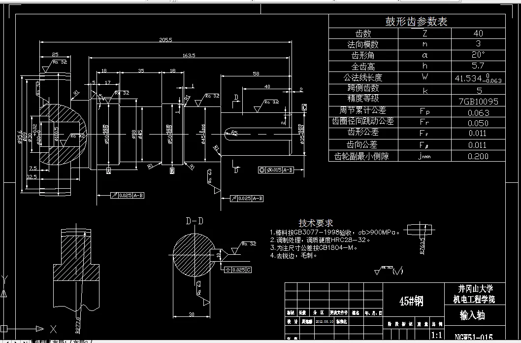 [摘要]根据输入转速为1460转/分钟、输入功率为11KW、传动比为8等的初始条件对NGW型行星齿轮减速器进行设计。该说明书介绍了行星齿轮减速器的国内外发展现状,确定了设计内容及行星齿轮减速器的基本结构,分别对行星齿轮减速器的传动齿轮、传动轴、键及轴承进行了设计,确定了传动齿轮的材料、工艺、主要参数、主要尺寸、啮合要素并对其强度进行了验算。传动轴有输入轴和输出轴,分别确定了输入轴和输出轴,所以在对轴承的寿命进行计算、设计的基础上选用适当的轴承,以符合整机工作要求。另外,本文还对箱体结构尺寸进行了简单的设计。