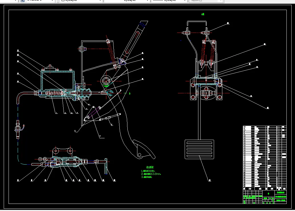 (5)对离合器操纵系统的设计。通过对机械式操纵系统和液压式操纵系统特点的分析,并选取了液压式操纵系统,对其进行了设计和尺寸计算。