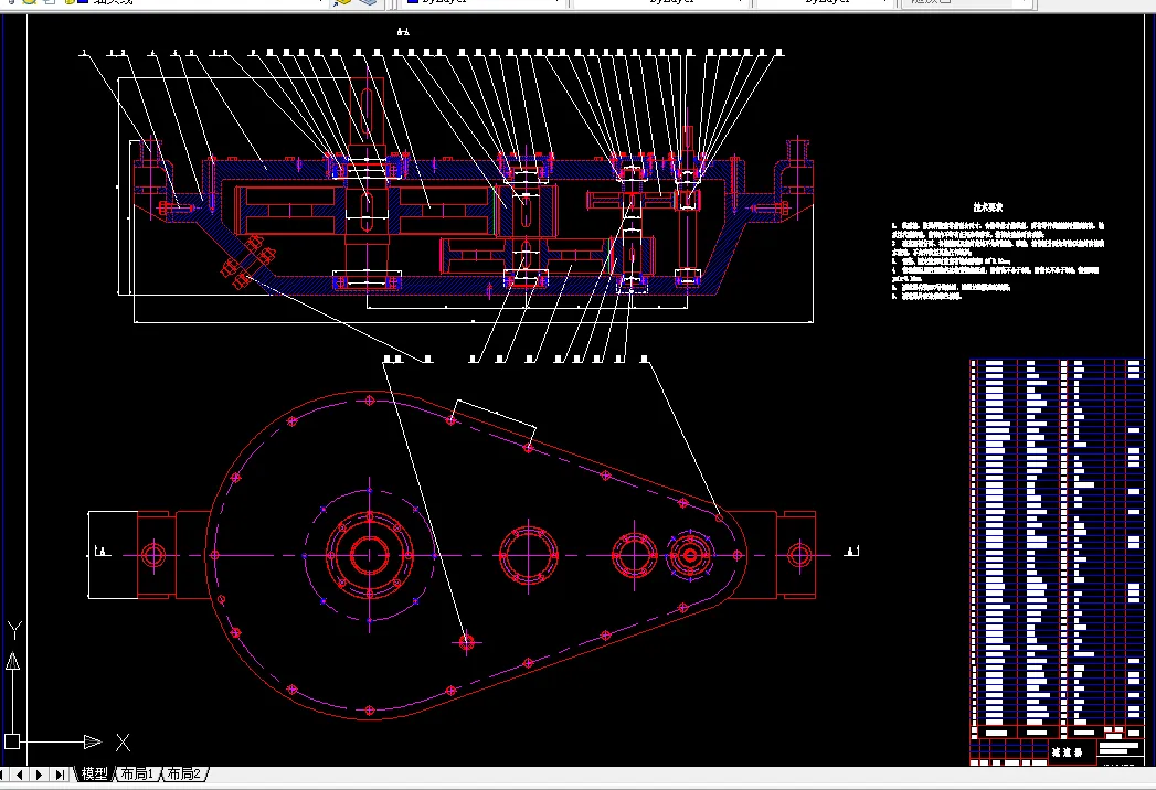 1、采用锥齿轮减速箱设计,绘制相关毕业设计3张零号图纸;
