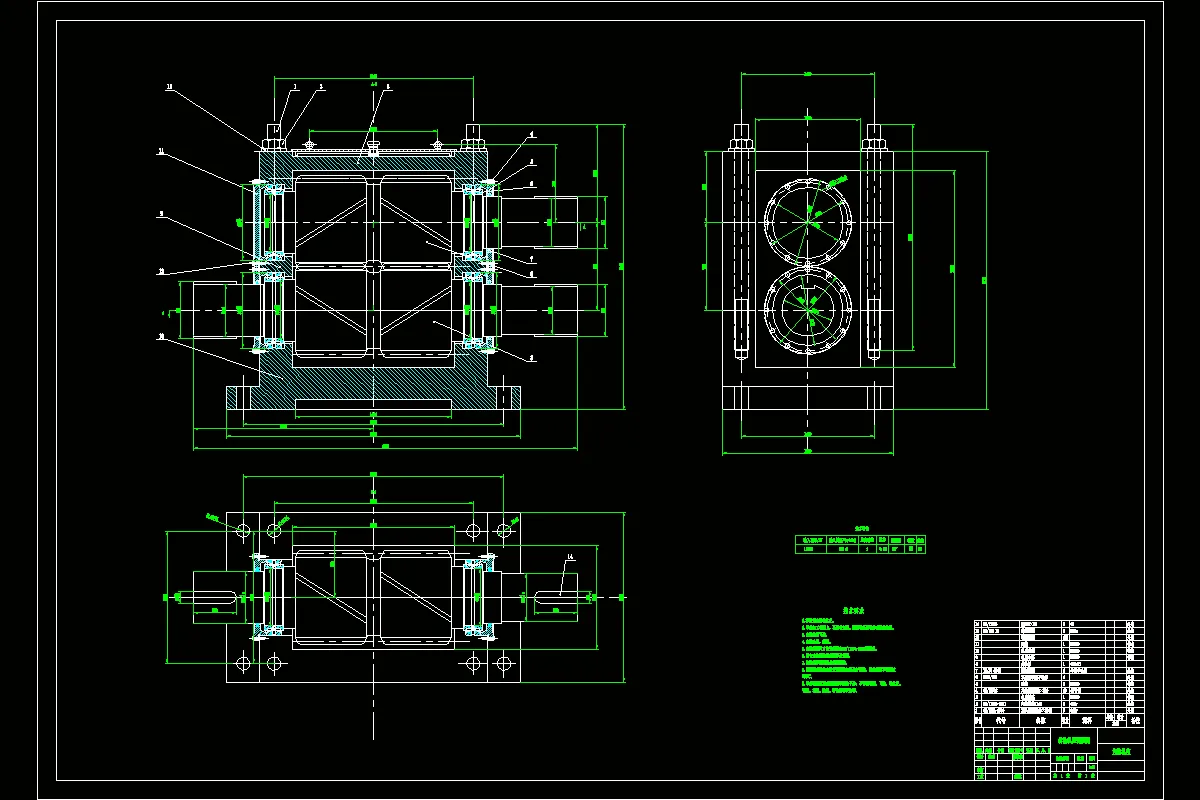 最后根据设计参数,画出了齿轮机座的整体装配图,和重要零件的零件图。并依据动力的传递路线,画出了传动系统从电机到轧辊的总体示意图。以便读者更清晰的了解轧机的工作原理,并画出了相应零件的工程图,以便加工制造。