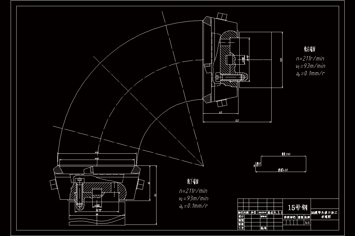 关键词:组合铣床;90度管弯头;三图一卡;端面铣刀;夹具设计