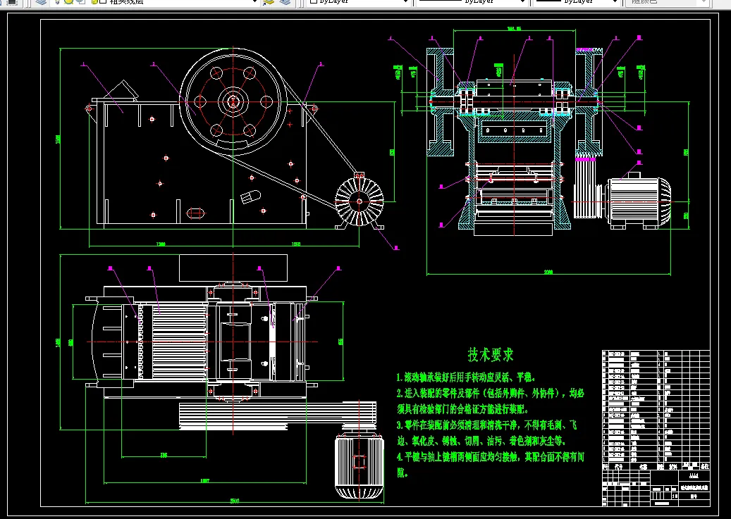 在本次的颚式破碎机的设计上,主要设计的内容是分析和了解颚式破碎机的工作原理,确定传动结构形式,对飞轮结构进行设计,设计传动带轮的结构形式和传动带的选型和设计,满足颚式破碎机在正常工作过程中的传动要求,对传动系统的结构进行绘制结构总图,设计动鄂、定鄂、皮带轮、皮带、偏心轴等结构形式。选择合适的机架结构形式。确定在传动上的工作原理和主要部件的工作过程,对机器的主要的参数进行传动上的计算和校核。完成本次设计的基本任务要求,提高颚式破碎机在传动系统上的使用寿命,降低传动系统工作的维修率,从传动结构形式上提高颚式破碎机的工作效能。
