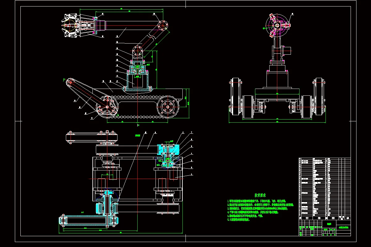本文首先,通过功能和设计任务的分析,确立了水果采摘机总体功能构架;接着,对本采摘机车体结构部分、手臂部分、手抓部分进行了详细设计与校核并采用Pro/E三维设计;然后,进行仿真分析,确保水果采摘机结构最优,效率最高,性能最优;最后采用AtuoCAD软件绘制了采摘机的装配图及主要零件图。