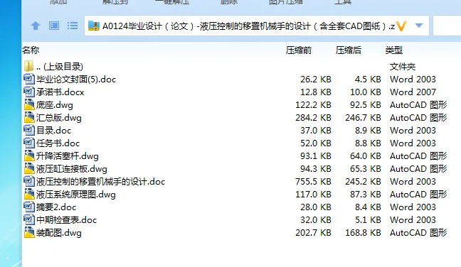 知识,完成对机械手的设计,并绘制必要装配图、液压系统图。机械手的机械结构采用油缸、螺杆、导向筒等机械器件