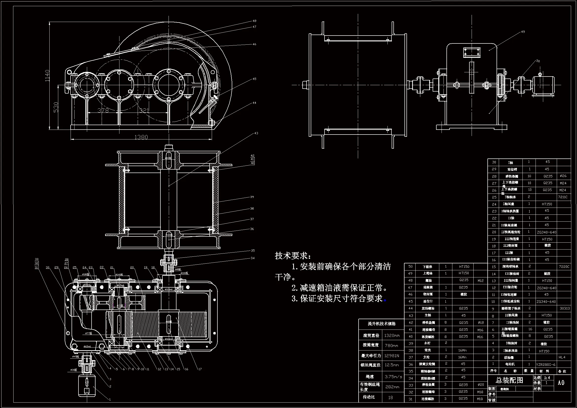 关键词:提升机;减速器;滚筒;主轴;校验