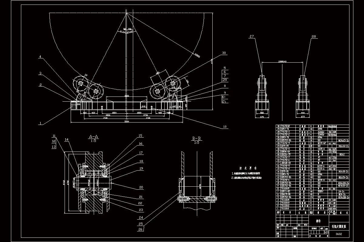 本题目来自工程实际,具有很高的实用价值,涉及到机械、液压和结构设计方面的知识,学生通过本设计,能够将大学中学到的机械、电子、结构设计方面的知识很好的用到实际工程中,培养学生进行实际工程设计的技能。并对具体工程项目的设计过程能有一定的了解,为以后的工作做好准备。翻车机系统设备,用于铁路敞车散装物料翻卸的专用设备,作业效率高,环保性能好.系统卸车效率20-25节/小时;适用车辆:O60、O61、O62、O64、O65、O70等;额定翻转质量:100t;翻转角度:正常165°;最大175°;翻转周期: ≤60s ;平台轨距:1435mm;传动方式:销齿传动/齿轮传动;压车方式:液压压力;靠车方式:平台移动靠车。要求设计翻车装置(包括转子、压车装置、托轮支撑装置、驱动装置)。翻车机的工作状态是由左、右端环同时做旋转运动从而带动整个架体及车厢转动来实现物料的翻卸。其驱动装置是采用双电机驱动,经二级圆柱直齿轮减速器减速,通过联轴器与小齿轮连接,由小齿轮与固定在端环上的大齿轮的啮合带动整体的旋转实现翻车。其靠压机构主要由靠板、液压缸、摇臂组成;而压紧机构主要由压板和液压缸组成。本次设计主要对翻车机的传动方案,转子、压车装置、托轮、支撑装置、驱动装置进行了设计;对翻车机的动力学分析及动力学参数进行了计算;对主传动的电机及各主要零部件进行设计并校核;对设备的经济性及环保等各方面也进行了分析。