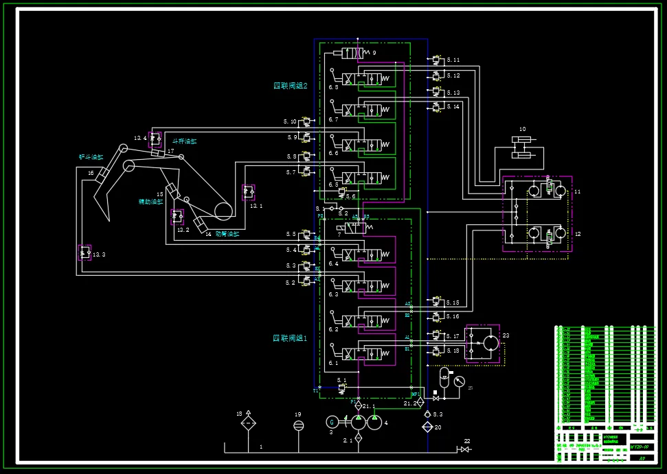 包含二维CAD(液压系统原理图,油箱焊合图,集成块装配图,泵站装配图),包含全部三维SW2018所有零部件以及装配体。设计有动臂升降、斗杆收放、铲斗装卸、底座回转与整机行走等功能。