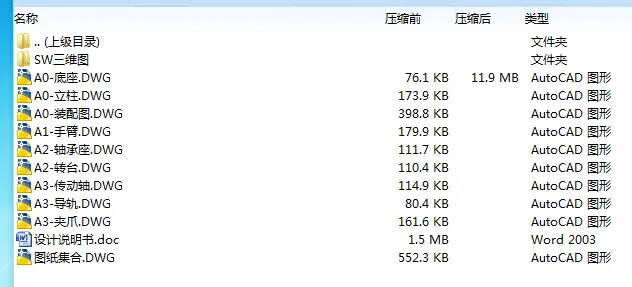 2、若题目上备注三维,则表示文件里包含三维源文件,由于三维组成零件数量较多,为保证预览截图的简洁性,本站将三维文件夹进行了打包。三维及CAD预览截图,均为本站电脑打开软件进行截图的,保证能够打开,下载原件超高清,下载后解压即可;