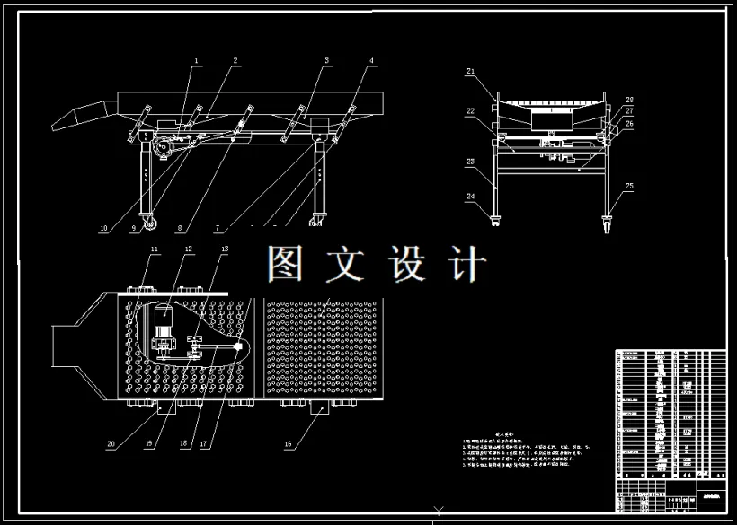 论文重点研究了红枣的智能化分拣机,其中的振荡机构可以让红枣更好地在筛网中移动,从而确保了机器的工作效率,而筛网的结构则可以很好地控制红枣的分类直径。此外,还对红枣在筛网中的移动和受力展开了研究,从而使得该设计可以与实际情况相吻合,同时还对一些辅助结构展开了设计,比如对支架和导轨的进行了设计,并对其进行了计算,来确保整体的机械结构可以达到需要的程度。在红枣向前移动的过程中,那些比筛孔直径更小的红枣会在引力的影响下,进入到分选槽中,在第一段冲程中,那些直径小于2 cm的红枣会穿过筛网,进入一级分选槽,再经过第一个出料口进行装袋;在第二次冲程中,直径为2~3公分的大枣经筛子进入二级分选槽;最后在筛网中大于3公分的红枣会从第三个出料口中直接掉落,再装袋。该机构是利用低速电机与 V带直接相连,然后由 V带带动偏心轴,并利用偏心轴连杆将动力传递给分类机构,从而完成对红枣的分类。