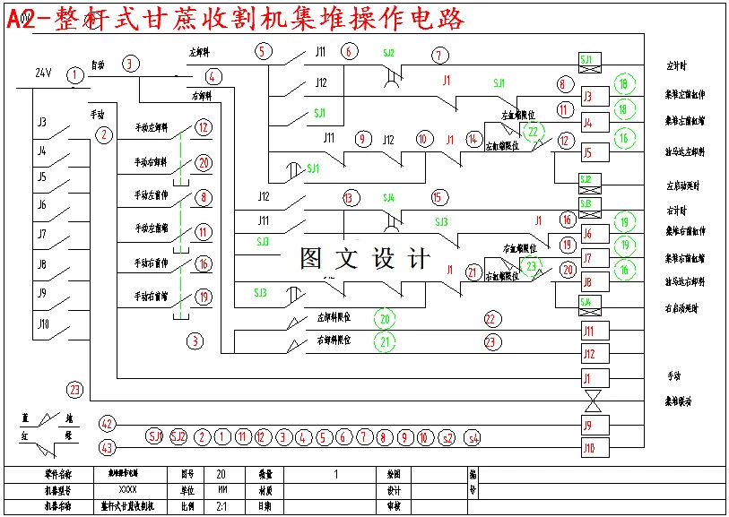 这是一份很具有设计参考价值的方案,希望审核人员不要以模型简单退稿,再三斟酌。针对甘蔗收割机在田间作业时,地形起伏变化影响切割刀盘刀片入土切割的深度,造成甘蔗根茬高度变化、根茬破头等问题,设计了一种基于AT89S52单片机的刀盘高度浮动控制系统。采用超声波测距雷达测量刀盘刀片最前端位置以及对应切割刀盘刀片最前端处垄间地形变化情况,在单片机内部对测量值进行中位值滤波处理后作为刀盘调整的参考值,对电液换向阀输出控制信号调整刀尖位置,实现切割刀盘高度随地形变化。为验证该系统的工作性能,在4GDL-132型甘蔗收割机样机上进行了试验,试验结果表明:设置刀尖与地面距离标准值为17.5cm,允许波动范围±2cm,在20m长、±5°坡度变化的路面行驶时,刀尖与地面距离平均值为17.49cm。试验结果证明,切割刀盘浮动控制系统能基本实现刀盘浮动控制,刀尖轨迹曲线与地面的轨迹曲线相同。