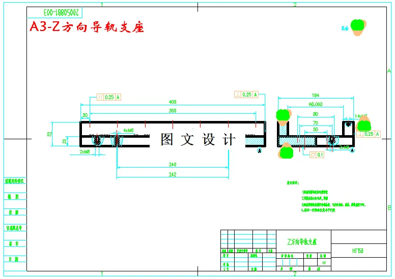 本设计主要对数控工作台的机械部分进行设计,根据已知的条件参数计算得出相应的结果选用与之相配的标注件型号,最后根据选用的标准件进行工作台的整体组装,运用AutoCAD软件完成工作台的装配图以及相关的非标准件零件图,最终完成工作台的整体设计。 技术指标 :主电机功率:3KW电主轴电机 行 程 : X:300mm Y:250mm Z:150mm 工作台尺寸:230mm 270mm 16mm 刀 具:10mm球头铣刀