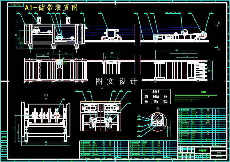 带式输送机是目前矿井运输中最主要井下巷道运输设备。是一种连续不断的运输矿山机械。在大运量小空间的运输时皮带运输的优点尤为突出。能把矿井下的煤水平小倾角长距离运输。电机作为动力源。中间靠其他设备连接驱动滚筒。靠滚筒与皮带的摩擦力来驱动皮带。靠皮带上面的沟槽来运输煤或其他物料。皮带的下面用托辊作为支撑,支架用工字钢、槽钢和三角钢链接而成。为适应矿井工作面的长距离、大倾角的运输。本设计对输送机的结构设计成可伸缩型,方便皮带的运输,减少停机时间,增加生产率。从而提高年产量。本设计的结构包括:机头传动装置;储带装置;张紧装置;机尾移动装置。设计选型计算包括:带的计算与选择;传动方式的选型与布置;张紧装置的计算与托辊的布置;减速器的设计计算、储带的结构设计与转向滚筒的原则,以及机尾移动方式的设计。本设计主要内容是:储带装置的设计计算和机尾移动装置的设计。使输送机在工作期间减少大量的停机时间。增加工作时长。提高煤矿的年产量。减少操作人员的数量。对煤矿中巷道的输送具有一定的经济实用性。869493