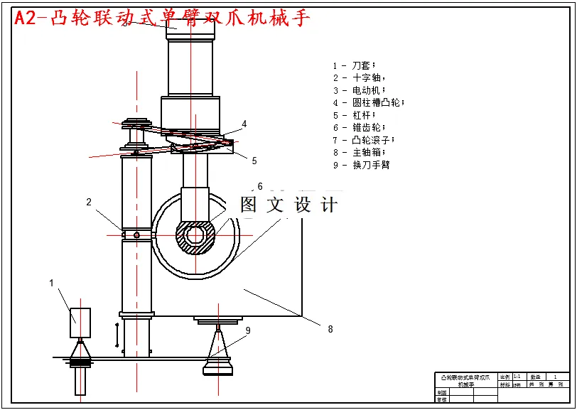 本设计介绍的是数控加工中心刀库与机械手研发与设计。加工中心它具有刀库和自动换刀装置,重点讲的是数控卧式镗铣床的换刀装置的总体设计,是用其中带有刀库式的自动换刀装置来进行分析的。它是多工序数控机床上应用最广泛的换刀装置,整个换刀的过程特别繁琐。第一步呢就是要把加工过程中需用的所有的刀具都安在一个比较合格的的刀柄上,在机床外进行尺寸的一个预调后,再按特定的方法装到刀库上去。在换刀时,要先在刀库中选择刀具,然后由机械手从刀库和主轴上取出刀具,再交换位置,把新的刀插到主轴,旧刀放回到刀库。放刀具的刀库有很大的的容量,它可以放六十把刀具,是采用链式结构,安装在机床的左侧刀库上。设计成由多环链式刀库和回转式双臂双手机械手组成。这个设计的主题就是刀具交换装置的结构设计、液压的控制。基于刀具数量、刀具直径、最大长度、最大重量的工具、工具存储空间、刀具运动线速度的可靠性,通过对存刀数、刀具最大直径、刀具最大长度、刀具最大重量、刀库安装空间、刀具最大运动线速度、刀库工作可靠性的要求以及所具有的条件的充分研究和分析,实现了刀具交换装置的总体方案的选择、总体结构设计、水力设计、以及轴、链轮、齿轮、支架、张紧装置、压盘、链板等部分结构设计、动态形式,电力传输,驱动器和运动控制类型的选择。使机构能够准确、快速、可靠地完成指定的运动。