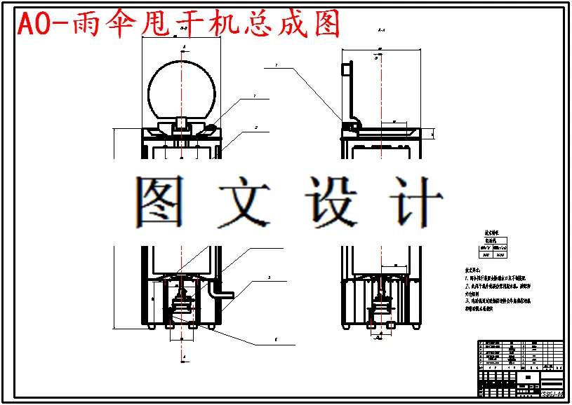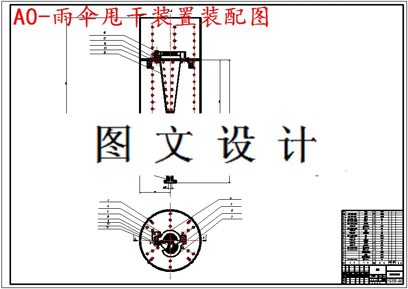 本设计旨在设计一种雨伞甩干装置,既能够甩干长伞又能甩干折叠伞,而且能够在短时间内甩干雨伞。联想到衣服甩干机的工作原理,通过高速圆周运动利用离心力原理将附着在雨伞上面的雨水甩干。由于伞的结构特征,如果在高速转动时没有将其固定和夹紧,就会破坏伞的骨架结构使伞失去作用,更为严重的是损坏甩干装置。所以本设计的关键问题就是解决伞的定位和夹紧问题。对比几个方案的优缺点,最终在所有方案当中确定了使用性和操作性最强的方案。该方案构想出将折叠伞跟长伞一样竖直放置甩干,并运用橡胶的高弹性,做成柔性夹持,能够夹住不同直径的伞,最后通过类似于门锁的机构将伞稳稳的夹紧在橡胶中,在动力的带动下高速旋转甩干。