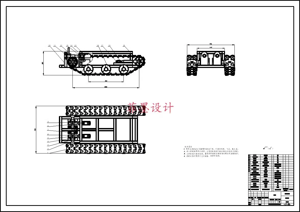 本设计此次对履带底盘底盘结构进行设计,在此次设计中首先通过研究如今市场上的电动履带底盘的结构和查阅相关资料对底盘结构进行深入研究,并根据此次设计需要对底盘结构进行整体布局设计。并通过关键零部件的设计分析对整体结构的稳定性提供理论支持。此次设计中主要设计分析的结构有涡轮蜗杆传动机构、履带张紧机构、底盘架结构等。同时考虑到环保、可持续发展、经济成本和可靠性等方面对整体机构进行改进。同时采用solid works进行三维建模,并对重要传动部件进行有限元分析。通过上述方式来保证电动履带底盘的平稳运行,符合设计要求,达到可以自由转向,并保证转弯半径尽可能小,采用两履带(分别对称布置于底盘两侧)单独驱动可以满足自由转向的目标。