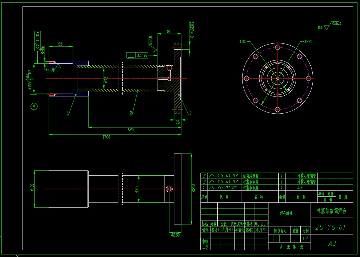 包含全套三维SW2018零部件以及总装配体,包含全套二维CAD文件,液压系统原理图,柱塞缸总装配图,柱塞缸缸筒焊合图,柱塞缸杆,柱塞缸导向套,柱塞缸端盖等。