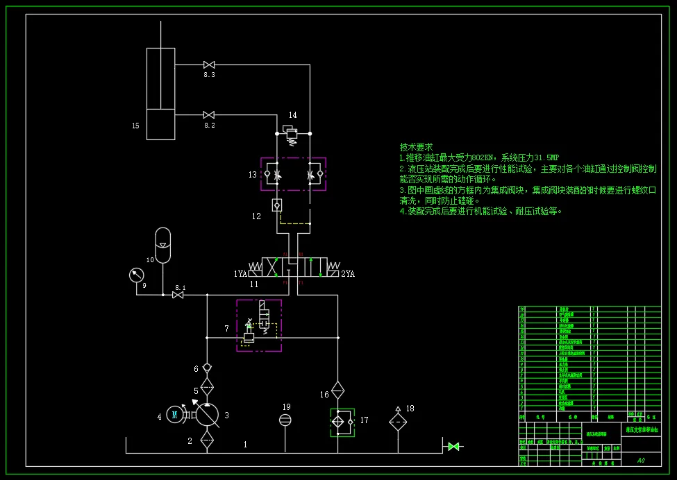 系统工作压力: 31.5MPa (已知) 系统工作流量 :100L/min 推移油缸最大受力:802KN (已知)