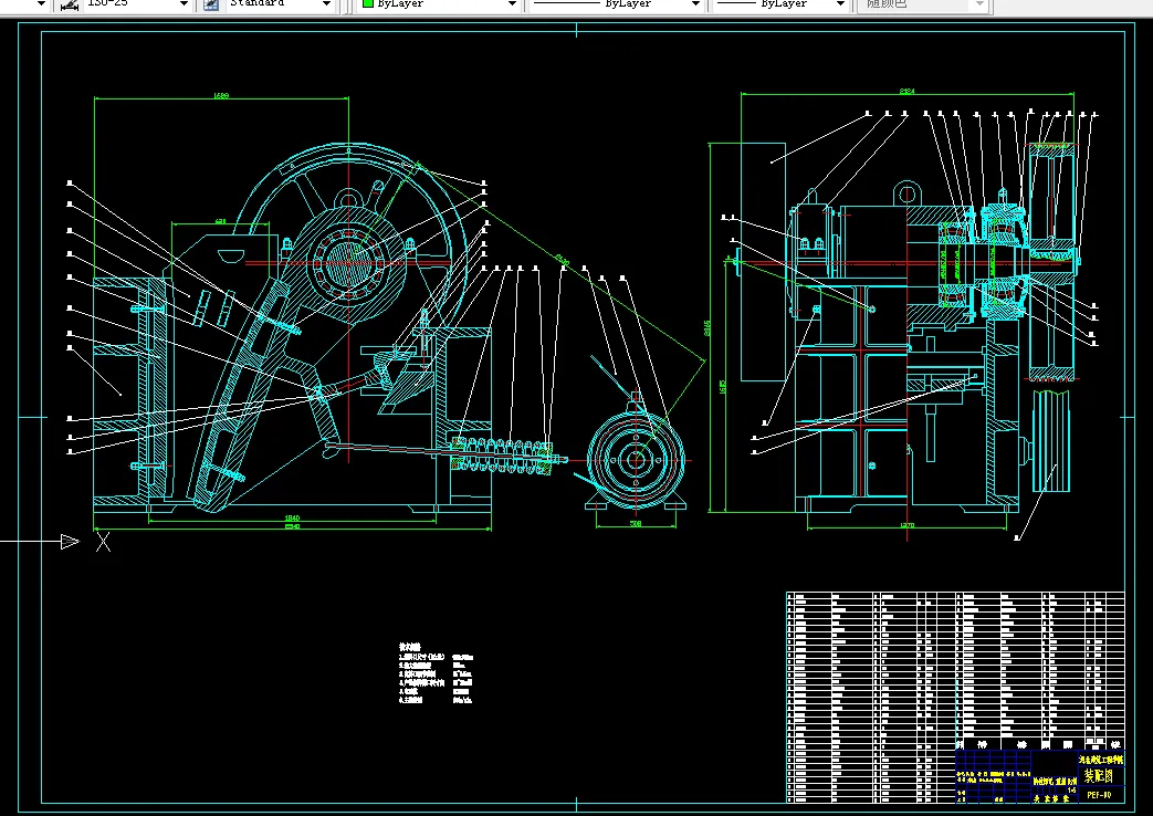 总体设计后部分所涉及的减速器采用了三级展开式圆柱齿轮结构。齿轮材料为40Cr,并经调质及表面淬火。校核齿轮、轴、键、轴承确保了设计的实际可行性。