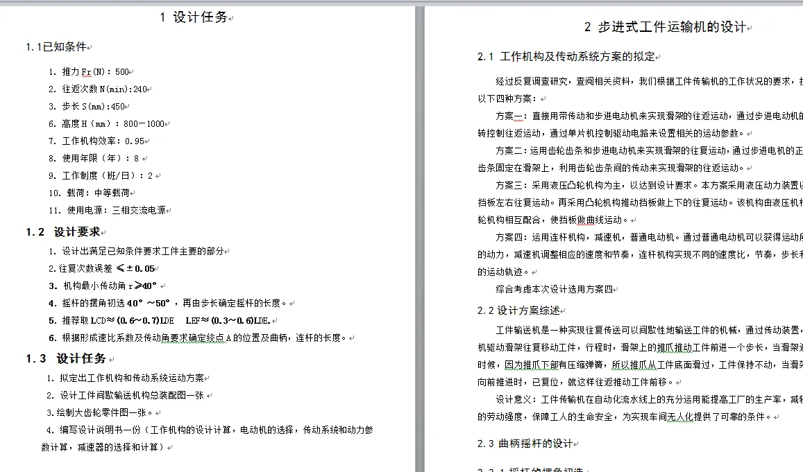 4. 编写设计说明书一份(工作机构的设计计算,电动机的选择,传动系统和动力参数计算,减速器的选择和计算)