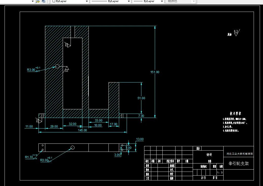 钢筋调直切断机的功能是对弯曲钢筋进行调直和定长切断。因为能够极大的减轻工人的工作时间提高生产效率因而应用广泛。其组成部分主要分为调直部分,切断部分,牵引部分。工作机理为牵引部分引导钢筋进入调直机构和切断机构进行调直和切断。调直部分主要是由调直笼和调直辊组成的,工作过程是由电机带动调直笼旋转从而进行钢筋的调直。牵引部分是由电机经过皮带减速器进行减速然后由牵引轮通过摩擦力带动钢筋。切断部分是由电机经过皮带减速器进行减速然后带动偏心轮机构旋转实现锤头的往返运动进行切断运动 。