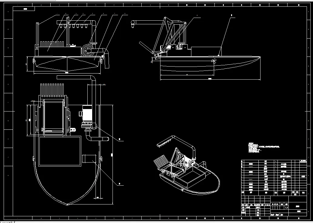 莲藕是一种可以食用的水生蔬菜,在我国种植面积和产量都很大,不仅如此,它还有很大的药用价值。莲藕的收获是莲藕种植的关键环节,具有收获环境复杂、收获难度大以及需要短期收获的特征,所以会伴随很多问题为减少甚至避免这种情况发生。目前莲藕收获仍然存在自动化程度不高、劳动强度大等问题,莲藕收获时,因为各方面的问题,各种因素影响藕民的采摘,这是我们不希望看到的。本设计将进行文献调研、初步设计确定1-2个结构方案、分析比较、完成装配图绘制、进行三维建模、进行关键结构设计和强度校核等工作。本毕业设计主要设计一款莲藕采摘收获装置,主要由采摘装置、收获装置、船身等组成。其中采摘装置、收获装置为本设计的重点,基于现在市面上的一些结构进行创新设计或优化,以所学知识进行相关参数收集与设计校准并整合,综上本设计旨在利用机械化对莲藕采摘收获这一关键的环节进行优化。