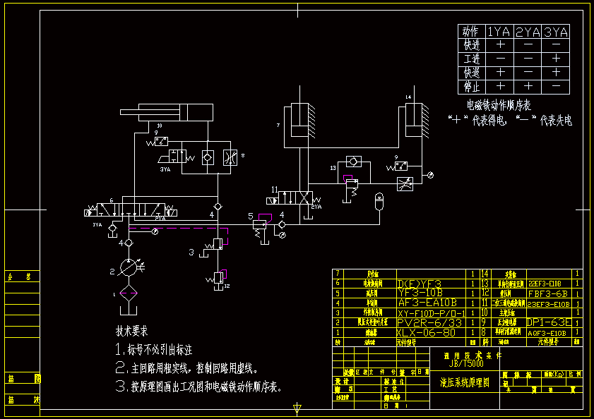 钻镗专用机床液压系统设计 液压缸负载主要包括:切削阻力,惯性阻力,重力等 ,即 F= FW+Ff+ Fm 式中:FW——工作负载,对于金属切削机床来说,即为活塞运动方向的切削力 FW =20000N Ff——导轨摩擦阻力负载,启动时为静摩擦阻力,启动后为动摩擦阻力,对于 平导轨Ff可由下式求得:) Ff=f(G+Fn) G——运动部件重力 Fn——垂直于导轨的工作负载,为零 f ——导轨摩擦系数,静摩擦系数为0.2,动摩擦系数为0.1 Ffs= 30000×0.2=6000 N Ffd =30000×0.1=3000 N Fm——运动部件速度变化时的惯性负载; Fm= G·Δv/(g·Δt) 式中,g——重力加速度; Δt——加速或减速时间,Δt=0.5s; Δv——Δt时间内的进度变化量。 Fm= G·Δv/(g·Δt)=30000×6/(9.8×0.5×60)=613N