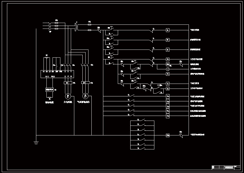 轮胎侧面撞击试验装置机电系统设计 主要内容是对轮胎侧面撞击实验装置的总体的布局、传动机构方案比较、气压控制系统、电气控制系统以及安全保护系统的分析和设计。设计中充分考虑到现有普通轮胎拆装机的状况,基本保持了原轮胎拆装机的功能并兼顾了原有扒胎机设备的一些性能,增加了工作盘转速可变功能(变频调速)、横臂可沿轴线伸缩并且可绕轴线旋转功能、冲击杆冲击轮胎侧面功能、立柱可后倾功能、气动门保护功能等。