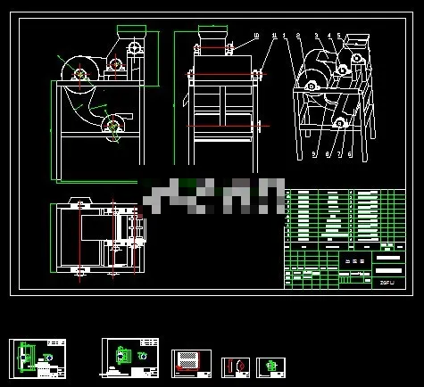 籽瓜籽汁分离机的设计 运用AutoCAD软件,绘制二维零件图和装配图,还运用Solidworks软件,绘制三维零件图和装配图。设计思路为:将籽瓜初步粉碎、用辊轮将籽瓜完全压碎、使瓜瓤和瓜皮分离、排出瓜皮、用离心法将汁和瓜籽分离、最后收集瓜籽。本机的主要装置有破碎齿压碎辊轮、大滚筒棍刀、小滚筒、小滚筒辊刀和瓜籽的收集装置。仅供参考,设计粗糙之处还请广大网友海涵,多多包容。