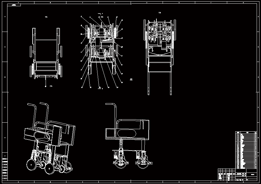养老助残机器人设计机械系统结构设计 针对助老助残服务机器人的需求,提出了一种平地、楼梯两用养老助残机器人的设计方案,设计了爬楼梯机构实现机器人爬楼梯功能,并分析了各部分机构工作原理。在前轮通过连杆导轨机构调节运动过程中的车体姿态,保证车体水平,并减小了机器人车体的波动程度,同时后轮采用两组电机分别控制驱动,能够实现任意转弯。