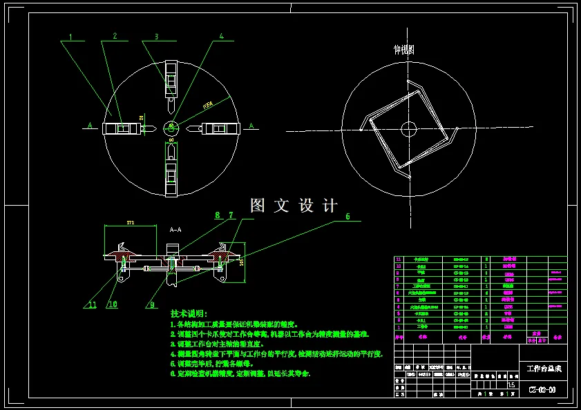 汽车轮胎拆装机总体设计 快速车轮拆装机兼拆胎,装胎一体,拆装机转盘的转动采用电机驱动,本次设计将松胎、卡爪的松紧两部分的动力设备统一为气压机,它对于其他机械系统来说具有结构简单