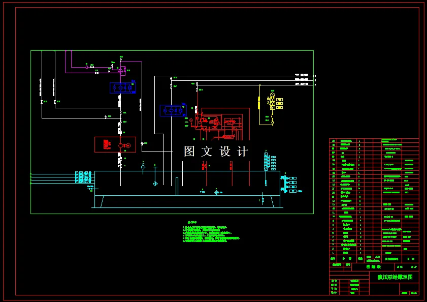型钢定尺机泵站阀台液压系统设计 主要对定尺机的液压站进行设计,主要设计出一套定尺精度高抗冲击性能好的液压系统,设计的主要步骤包括以下几点:设计要求和工况分析、确定系统的主要参数、拟定液压系统原理图、液压元件的计算和选择、液压系统的性能验算、绘制装置CAD图。